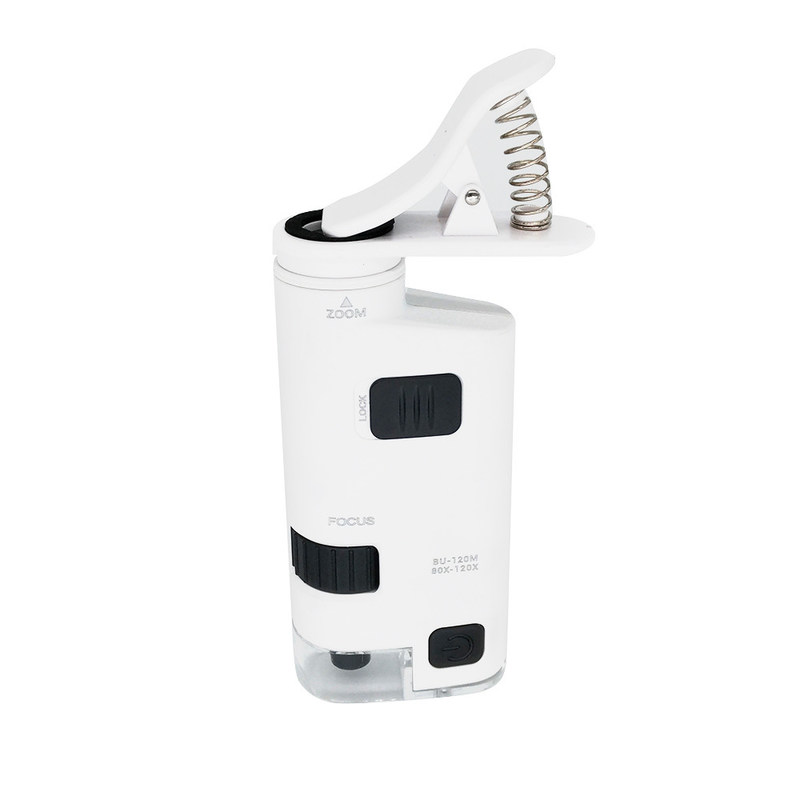 1. Microscope de poche allumé par bourdonnement avec le rapport optique de la puissance 80x-120x | Doit être tenu à plat contre la surface pour l'usage idéal.